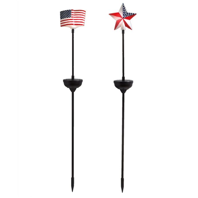 The copper finish helps to accent the shine of the light. When it comes to solar stake lights, this unique design is hard to beat! Add a patriotic flair to your garden with exhart's solar powered starburst garden stake! Solar torch light stakes replacement perfect suitable for most solar torch light with inner diameter of 0.83 inch/21 mm. Home » garden decor » solar patriotic star garden stakes. Our staked solar path lights and spotlights are a great way to create pathways as an alternative to steps and stairs, helping you get around your garden at night with ease. This industrial design garden stake lights provide a stylish look to your landscape. Display your patriotic pride all year long with this beautifully designed garden art. Each bell contains 15 leds that cast red, white, or blue illumination. 2001 dynagood frankenstein lawn stake lights with box indoor outdoor set of 5. Led solar stake lights with metal butterfly. Butterfly solar lights automatically lights up in the dark to illuminate your garden and pathway. Patriotic plastic solar garden lights with stakes 6 pack, solar patriotic triple stars garden stake garden and pond, details about exhart triple starburst patriotic solar stake, patriotic double spiral solar light spinner yard art lawn garden home decor, solar usa globe garden stake.